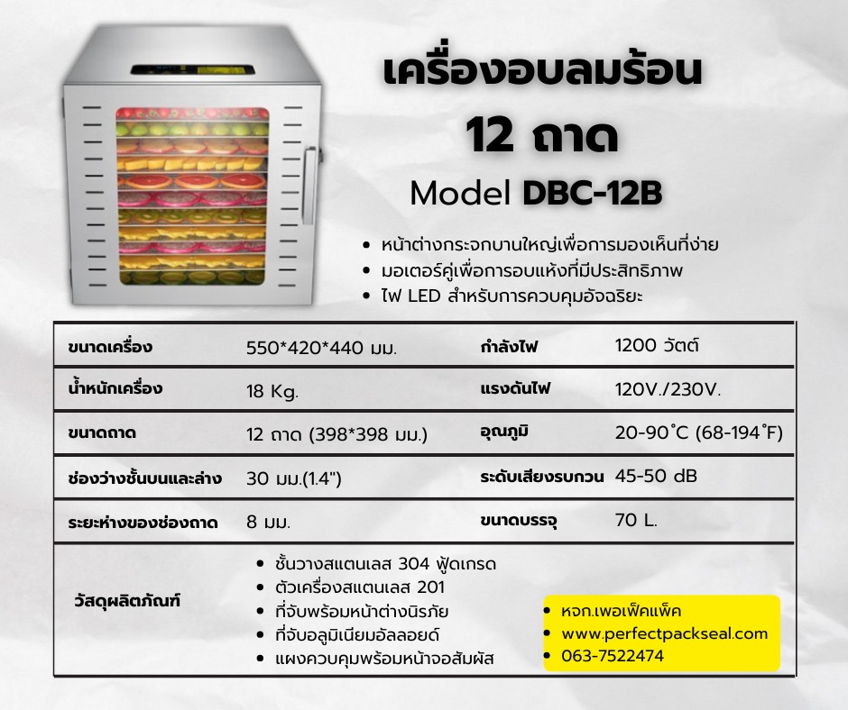 เครื่องอบลมร้อน 12 ถาดใหญ่